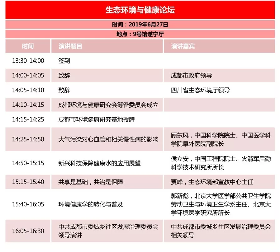 為了深入研究環(huán)境對(duì)健康的影響,普及環(huán)境污染的相關(guān)知識(shí),首屆中國(guó)環(huán)博會(huì)成都展將于6月27日在中國(guó)西部國(guó)際博覽城特別舉辦“生態(tài)環(huán)境與健康論壇”,屆時(shí),省生態(tài)環(huán)境廳領(lǐng)導(dǎo)、市政府領(lǐng)導(dǎo),以及各醫(yī)學(xué)衛(wèi)生專家都將會(huì)出席發(fā)言。